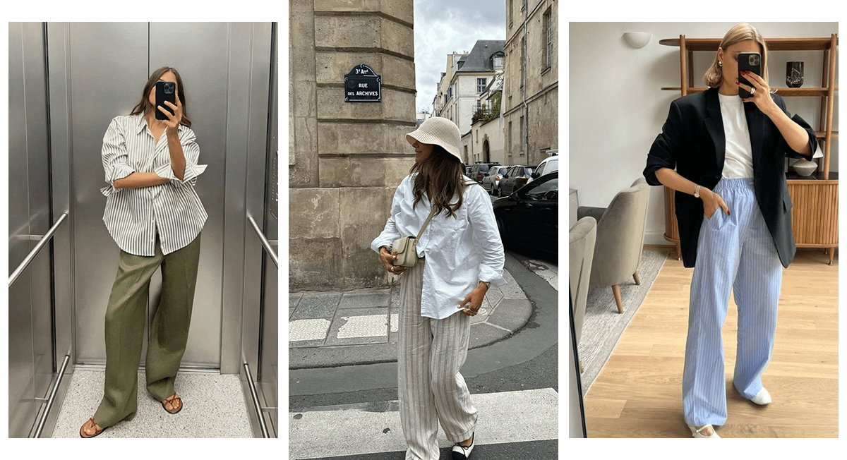 Осень — не повод отказываться от возможности носить легкие льняные брюки, особенно если они в вертикальную полоску и стройнят. Сочетать стильную вещь советуем с теплыми свитерами или с классическими рубашками.