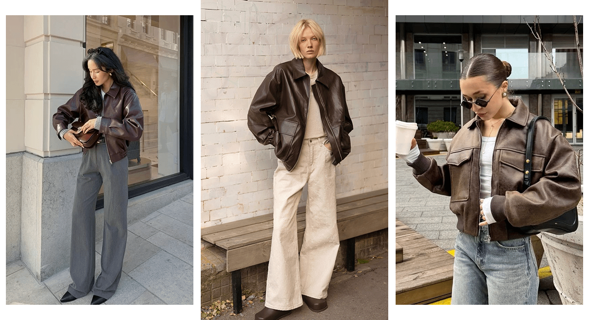 Если предпочитаешь одежду кроя оверсайз, примерь свободный бомбер с накладными карманами и широкими рукавами. Хочешь выглядеть более женственно? Тогда обрати внимание на укороченные бомберы прямого фасона. Цвет изделия может быть любым — от шоколадно-коричневого до темно-бордового.