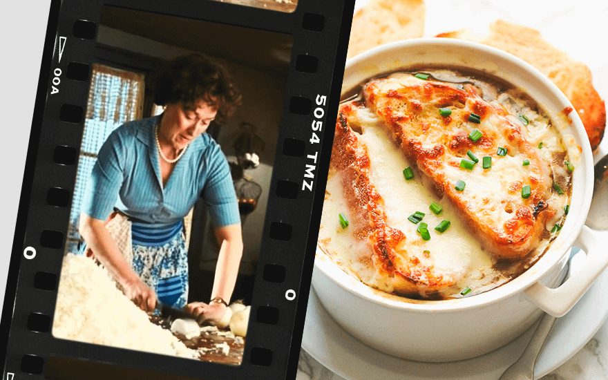 Книга рецептов Джулии Чайлд, которую она, к слову, писала на протяжении всей ленты, насчитывает 524 рецепта. Предлагаем остановиться на одном и приготовить луковый суп.