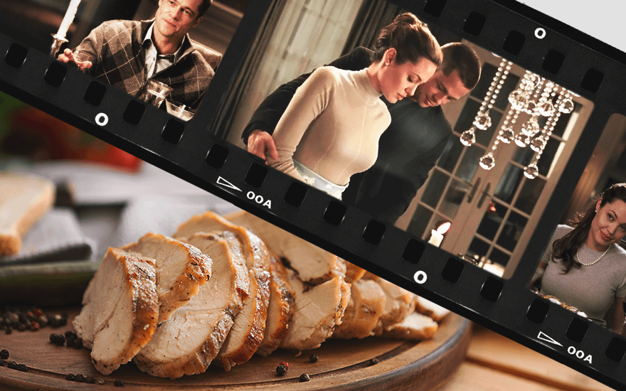Семейный ужин главных героев вряд ли можно считать образцом романтического вечера. Чего только стоит момент, когда герой Брэда Питта прячет столовый нож во внутренний карман пиджака. Натянутые улыбки, недоверчивые взгляды, осторожность в каждом движении — напряжение пары так велико, что вечер не спасает даже запеченное мясо. Но, быть может, миссис Смит приготовила блюдо не слишком удачно? Мы уверены, что мясо по этому рецепту улучшит атмосферу в доме и украсит совместный ужин.