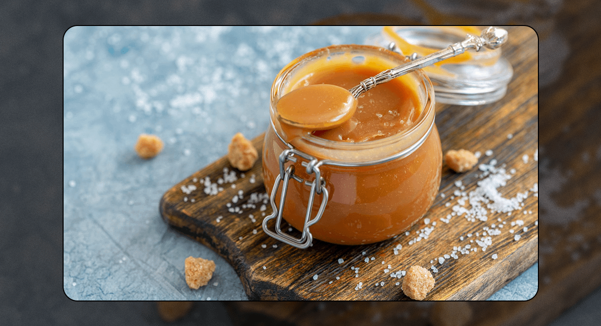 Дай карамели немного остыть в сковороде, затем аккуратно перелей в чистую сухую стеклянную банку или другую жаропрочную емкость. Полностью остуди при комнатной температуре, после чего закрой крышкой и убери на хранение в холодильник.