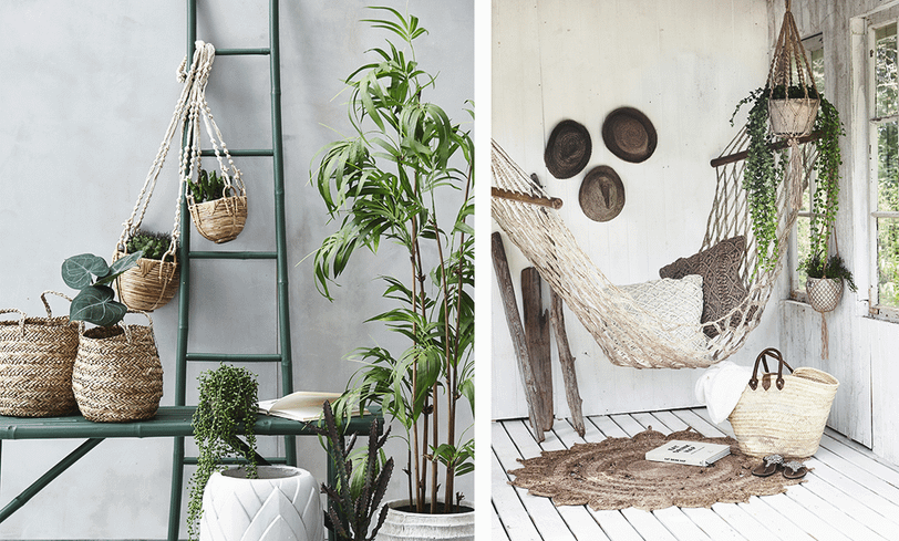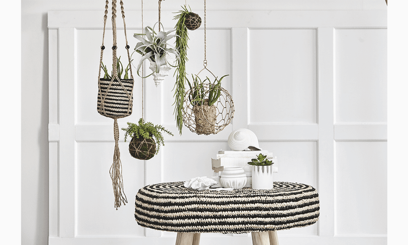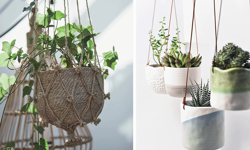 Стильная новинка и эффектное украшение интерьера – подвесные кашпо из джута, плетеные в технике «макраме», натуральные материалы и приглушенные оттенки – идеальный фон для экзотических суккулентов, ярких цветов, выгонки луковичных или ниспадающих ампельных растений. Очаровательно будут смотреться настенные подвесные карманы для выращивания растений – овощной зелени, ампельной клубники, цветущей настурции или петунии.