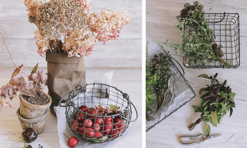 Плетеные корзины – лучшая основа для создания мини-огорода в летнее время. В них можно выращивать овощи – помидоры, перец или баклажаны, а на декоративной опоре – фасоль и душистый горошек. Корзинки из металлической сетки используют не только для выращивания цветов, но и в качестве декора. В теплое время года можно положить туда сухие букеты из лаванды или маков, а зимой создать ощущение праздника композициями из шишек, веток и ягод.