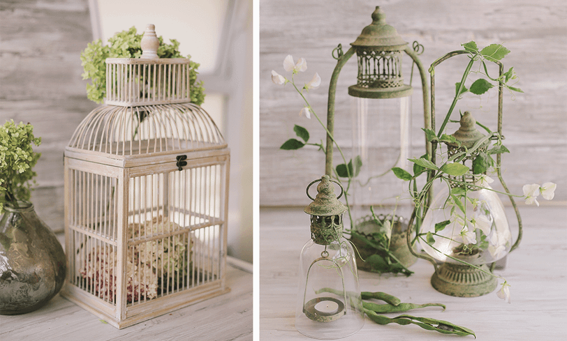 Добавить атмосферу спокойствия и уюта в освежающий декор мини-сада помогут тщательно подобранные детали, такие как свечные фонари и подсвечники, декоративные настенные часы или необычные фигурки птиц. Украсить стену и увеличить размер небольшого пространства можно с помощью интерьерного зеркала.