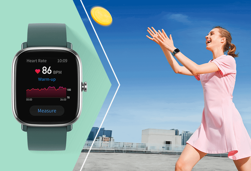 Эту модель часов Amazfit можно назвать личным помощником-консультантом в области здоровья. Гаджет способен оценивать физическое состояние — помогает ему в этом система PAI. Она обрабатывает данные о сердцебиении и другие комплексные сведения об организме с помощью специального алгоритма. Эта оценка, состоящая из одного простого и понятного значения, которая обеспечивает персонализированный анализ состояния здоровья пользовательницы на основе ее уникальных данных. Круглосуточный мониторинг сердцебиения и предупреждение об учащении, диагностика насыщения крови кислородом и многие другие функции превращают часы GTS 2 mini в миниатюрную станцию здоровья, позволяющую всегда быть осведомленной о своем состоянии и получать индивидуальные результаты.