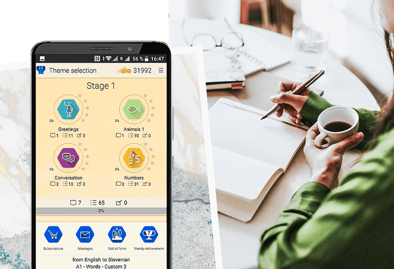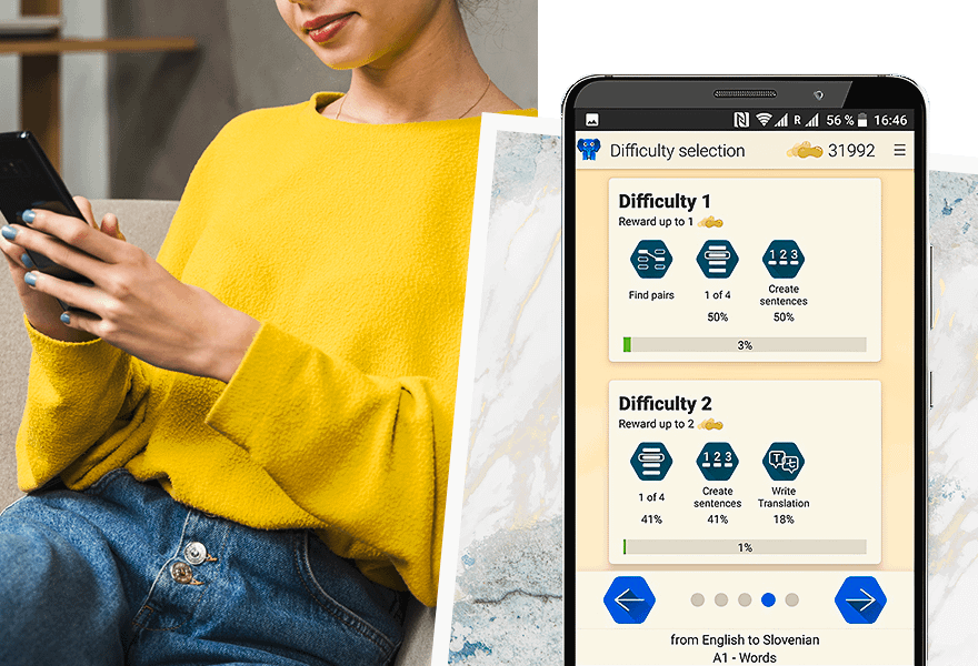 После того как войдешь в приложение и выберешь язык для изучения, ты получишь в свое распоряжение забавного синего слоненка, которого нужно кормить арахисом. Ты же не хочешь оставить его голодным? Последний тебе достается за прохождение уроков, которые помогут тебе расширить словарный запас и обуздать грамматику, а также развить навыки чтения, письма и улучшить произношение.