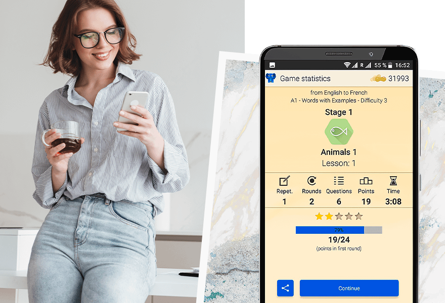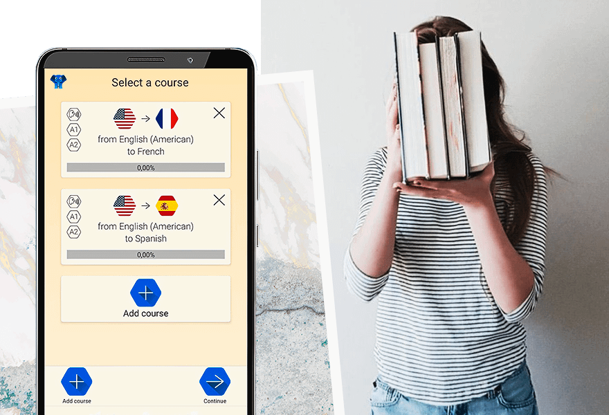 Каждый языковой курс разбит на ступени с обучающими карточками на самые разные темы: «преступление», «отношения», «чувства», «тело и здоровье», «спорт и игры», «путешествия», «искусство и пресса».