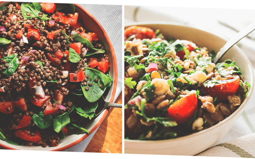 Русскому человеку такой салат напомнит кашу: основной ингредиент в нем чечевица. Блюдо сытное и полезное.