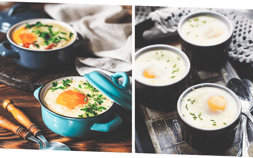 Яйцо en Cocotte – старинное французское блюдо для завтрака. Готовить его очень просто, правда понадобятся специальные небольшие глубокие емкости – кокотницы или другая похожая на них посуда. Начинкой для яйца-кокот может служить все что угодно: ветчина, сыр, зелень, обжаренные грибы. Из обязательных ингредиентов только сметана или сливочный крем и яйцо.