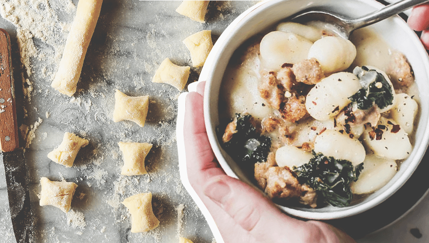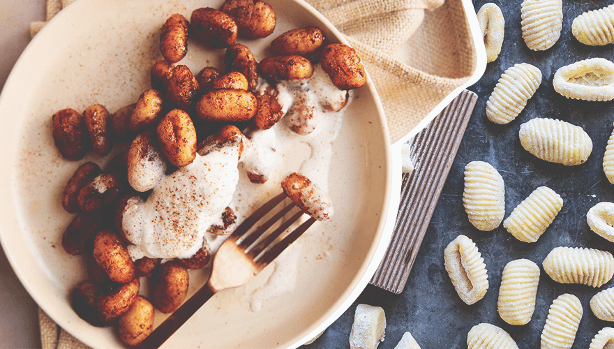 В меру плотные, сытные и нежные — таковы идеальные итальянские ньокки. Обычно к ним подают томатный соус с пармезаном — получается блюдо со вкусом, как у пасты аррабиата или пиццы «Маргарита».