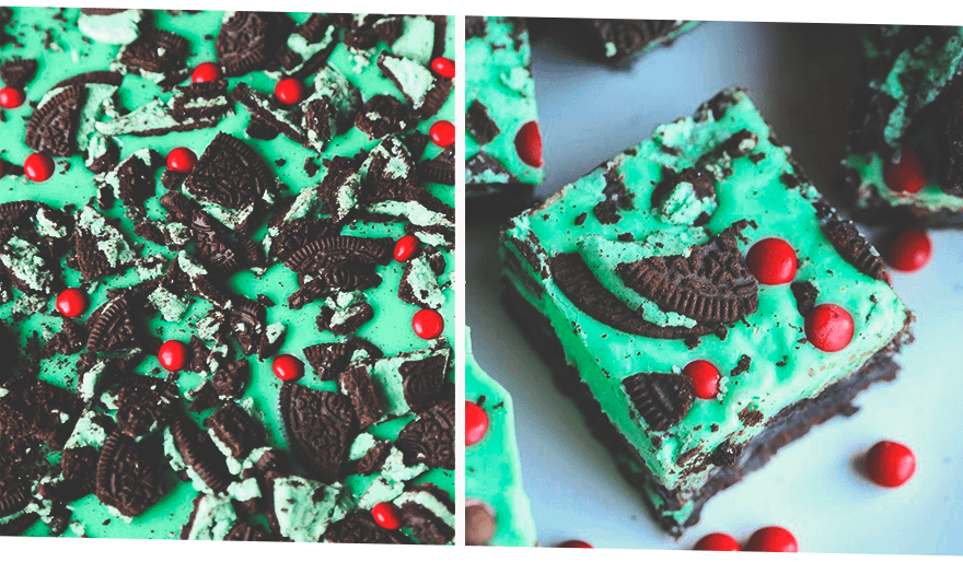 Классический брауни легко превратить в тематическое рождественское блюдо, украсив его зеленым кремом с мятой.