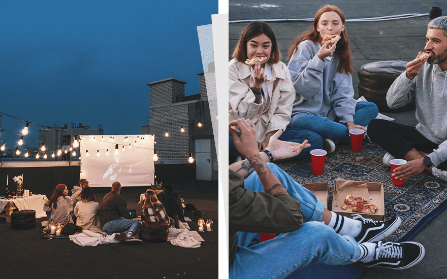 Домашний кинотеатр на открытом воздухе — отличная идея для романтического свидания. Особенно сейчас, когда столбик термометра показывает ощутимый плюс и можно дольше обычного находиться на улице.