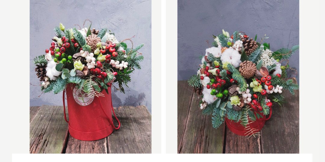 Красочные растительные композиции — классическое новогоднее украшение, которое любого заставит настроиться на праздничный сезон. Зимние букеты в шляпных коробках, собранные из еловых веток, шишек, ягод, зелени и цветов смотрятся нетривиально и могут добавить дополнительную искру праздничного декора в любой уголок твоего дома – будь то праздничный стол, прикроватная тумба, подоконник или журнальный столик в гостиной.