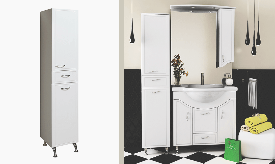 Ультрасовременная модульная мебель может придать любой ванной светлый и просторный вид — даже если она не благословлена большими размерами. Функция узкого шкафа-пенала — обмануть глаз и обеспечить ощущение открытости пространства.