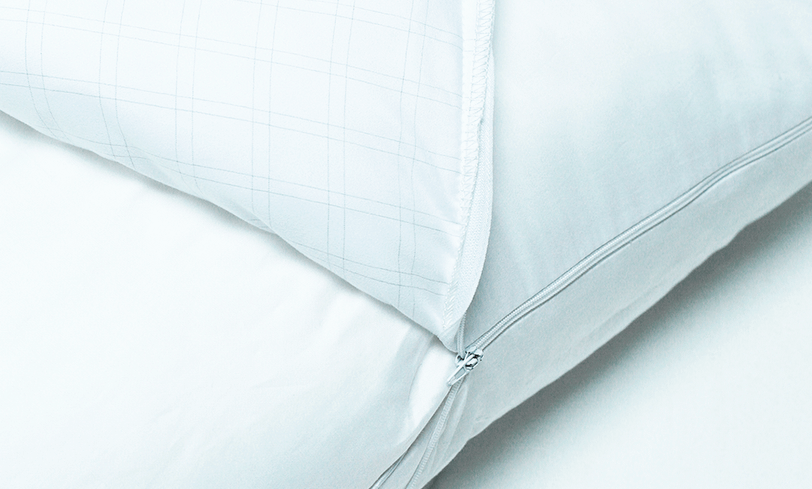 Для тех, кому сложно определиться с высотой, есть специальная двойная подушка. Снимешь тканевый чехол с наполнителем из искусственного пуха и внутри найдешь подушку поменьше с наполнителем из бамбука и полиэфирного волокна.
