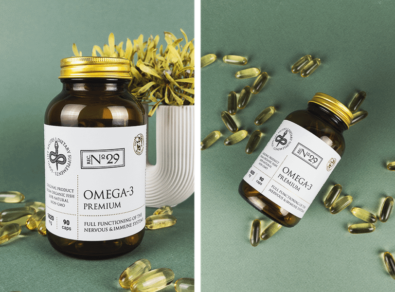 Больше всего омега-3 содержится в жирной рыбе. Но другие продукты также могут насытить твой организм полиненасыщенными кислотами — морские водоросли, льняное масло, семена чиа и другие. Правда, стоит учитывать, что потреблять их придется постоянно либо воспользоваться альтернативой и приобрести омегу в капсулах. БАД «Омега-3 Premium» — оптимально сбалансированное решение для ежедневного обеспечения организма полиненасыщенными жирными кислотами. Для изготовления капсул рыбий жир высокой концентрации импортируется из Европы напрямую с заводов-изготовителей. Так что покупая БАД компании Long Life Recipes, ты можешь быть уверена в качестве добавки.