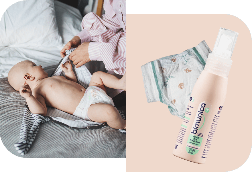 На самом деле, опрелости появляются только если долго не менять подгузник. Большинство производителей обещают до восьми часов сухости, но увы, это всего лишь рекламный ход. На деле менять их придется куда чаще, особенно в первые месяцы жизни малыша. Новорожденный может испражняться после каждого кормления, смена подгузника должна происходить сразу после этого, иначе могут появиться раздражения и покраснения. В борьбе с ними поможет спрей от опрелостей Bimunica — он обеспечивает уход за кожей в области подгузников, предотвращает появление сыпи, укрепляет эпидермальный барьер.