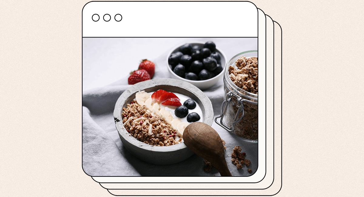 В глубокую тарелку или баночку выложи натуральный йогурт. Сверху посыпь гранолу. Поверх нее равномерно распредели промытые ягоды.