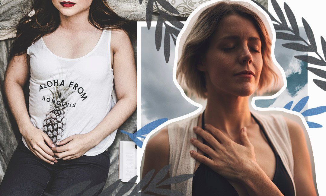 - Положи одну руку чуть ниже пупка, а вторую — на грудь.