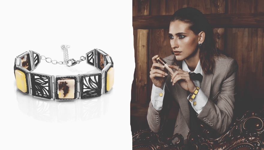 1. Составной браслет с текстурным янтарем «Модерн»