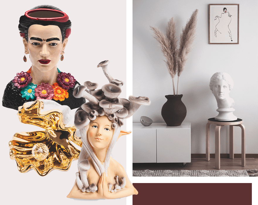 Уютные мелочи вроде небольших статуэток вряд ли кардинально изменят пространство квартиры, зато точно поднимут настроение. Обнимающиеся ангелы, лесная фея, кот с виолончелью, раковина с жемчужиной — простой и приятный подарок за очень разумные деньги. Можно купить сразу несколько и расставить по разным комнатам. Если же есть желание и возможность добротно потратиться, советуем обратить внимание на статуэтки, изображающие богиню счастья и удачи Фортуну, или на бюст Венеры Милосской, Фриды Кало или Моны Лизы.