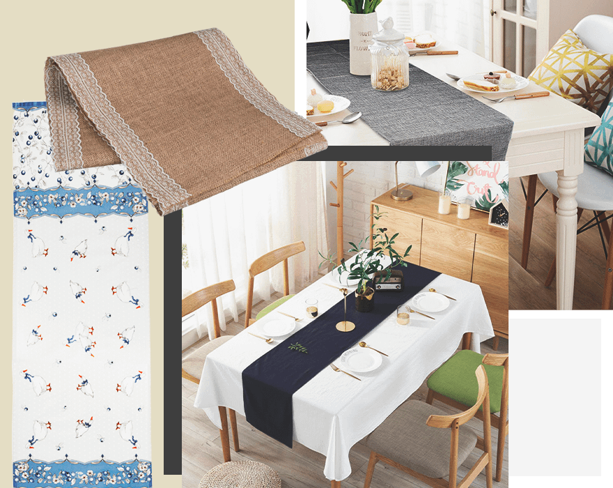 Дорожка на стол — один из самых быстрых способов освежить интерьер кухни. Она будет отлично смотреться как на голой столешнице, так и на обычной белой скатерти. В последнем случае лучше выбрать яркий вариант, который красиво сыграет на контрасте. На самом деле, это не только декор, но и вполне практичная вещь, которая защищает основную скатерть от жирных пятен. Чаще всего стелют одну дорожку по центру во всю длину стола, но можно и несколько поперек. Интересно будут смотреться дорожки с вышивкой в виде цветов, сердец, птиц или кремовых пирожных, особенно в минималистичном интерьере.