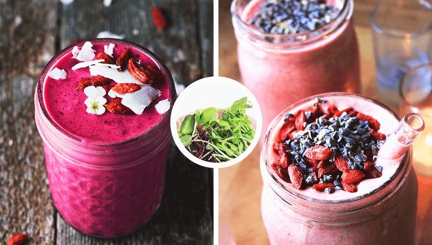Смузи станет прекрасной альтернативой каше на завтрак. Особенно если добавить в него богатую клетчаткой микрозелень гороха и редиса. Она улучшит пищеварение, быстро насытит и поможет не переедать. Витаминный заряд придадут свежие ягоды и семена льна, которыми полезно лакомиться с самого утра.