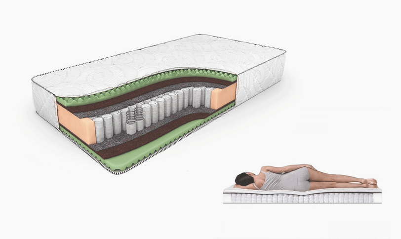 Основа матраса — блок из независимых пружин, каждая из которых расположена в изолированном чехольчике из спанбонда, что позволяет ей сжиматься независимо от остальных. Пружины сжимаются только там, где на них оказывается давление, обеспечивая анатомически правильное положение тела во время сна, благодаря чему кровеносные сосуды не сдавливаются, а мышцам обеспечен полноценный отдых. Если тебя беспокоит проблема профилактики и лечения остеохондроза, этот матрас станет твоим спасением.