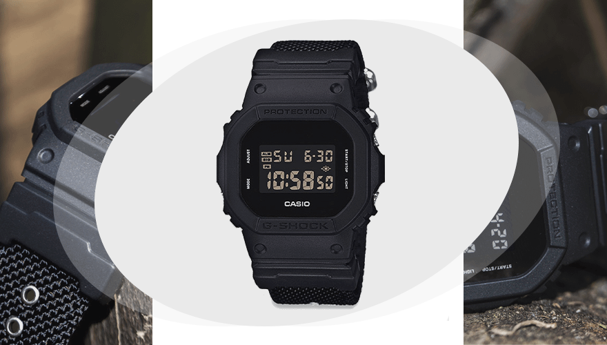 Часы G-Shock DW-5600 Nato от японского бренда Casio станут незаменимым аксессуаром для ценителей минималистичного дизайна. При первом знакомстве внимание привлекает черный матовый корпус, черный глянцевый циферблат и стойкий к истиранию водоотталкивающий тканевый ремешок. Циферблат часов оснащен электролюминесцентной подсветкой, что облегчает считывание показателей.