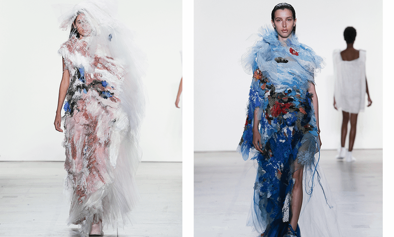 Романтичная и живописная коллекция Кэролайн Ху напоминает о работах Мане, но несмотря на то, как женственно выглядят ее платья, сочетание с высокими носками и объемными башмаками придает им современный шарм. Ее коллекции должны понравиться тем, кто хочет почувствовать себя принцессой, но не желает быть «дамой в беде», ждущей спасения от прекрасного принца.