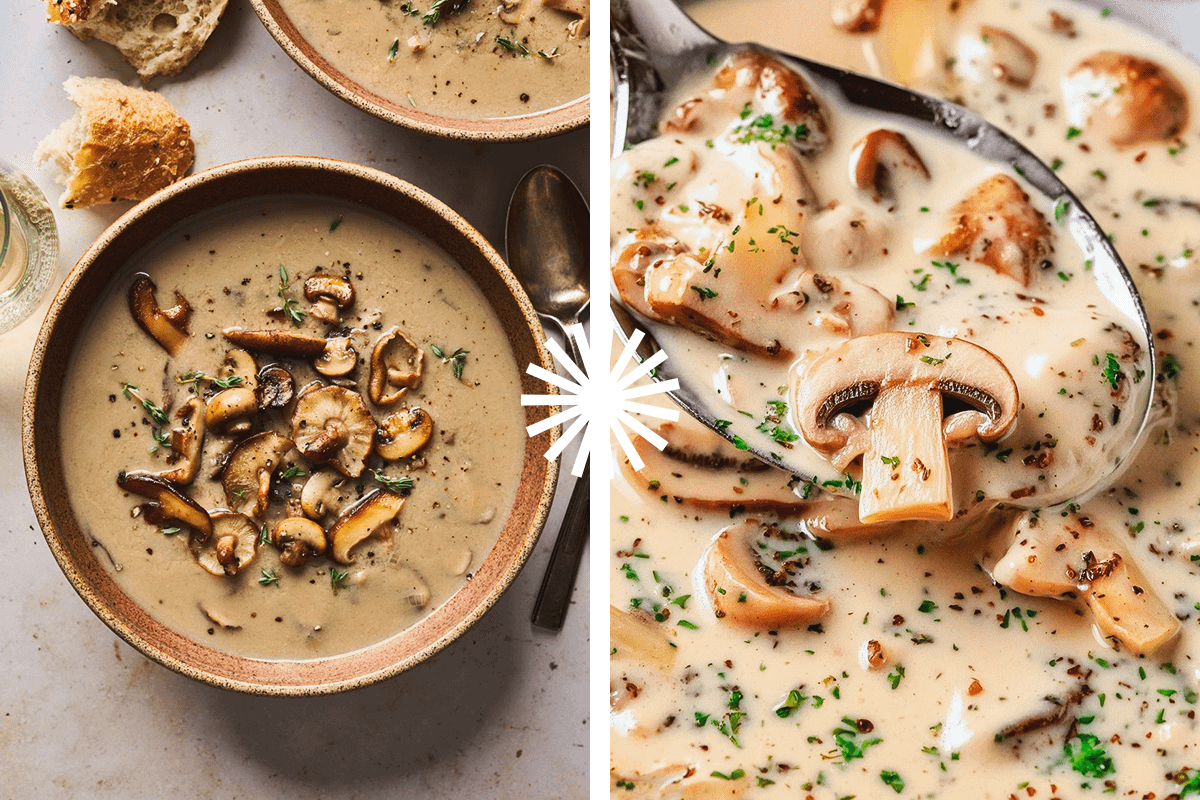 В оригинальном рецепте используются лисички, так как они идеально сочетаются со сливками, но ты можешь заменить их белыми грибами. А чтобы сварить бульон, используй 50 г сушеных грибов, луковицу, морковь и лавровый лист.