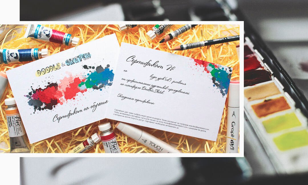 Вместе с сертификатом ты даришь возможность месяц смотреть любые видеоуроки на обучающей творческой платформе Doodle&Sketch. Этого времени точно хватит, чтобы начинающий художник нашел преподавателя и технику по душе.