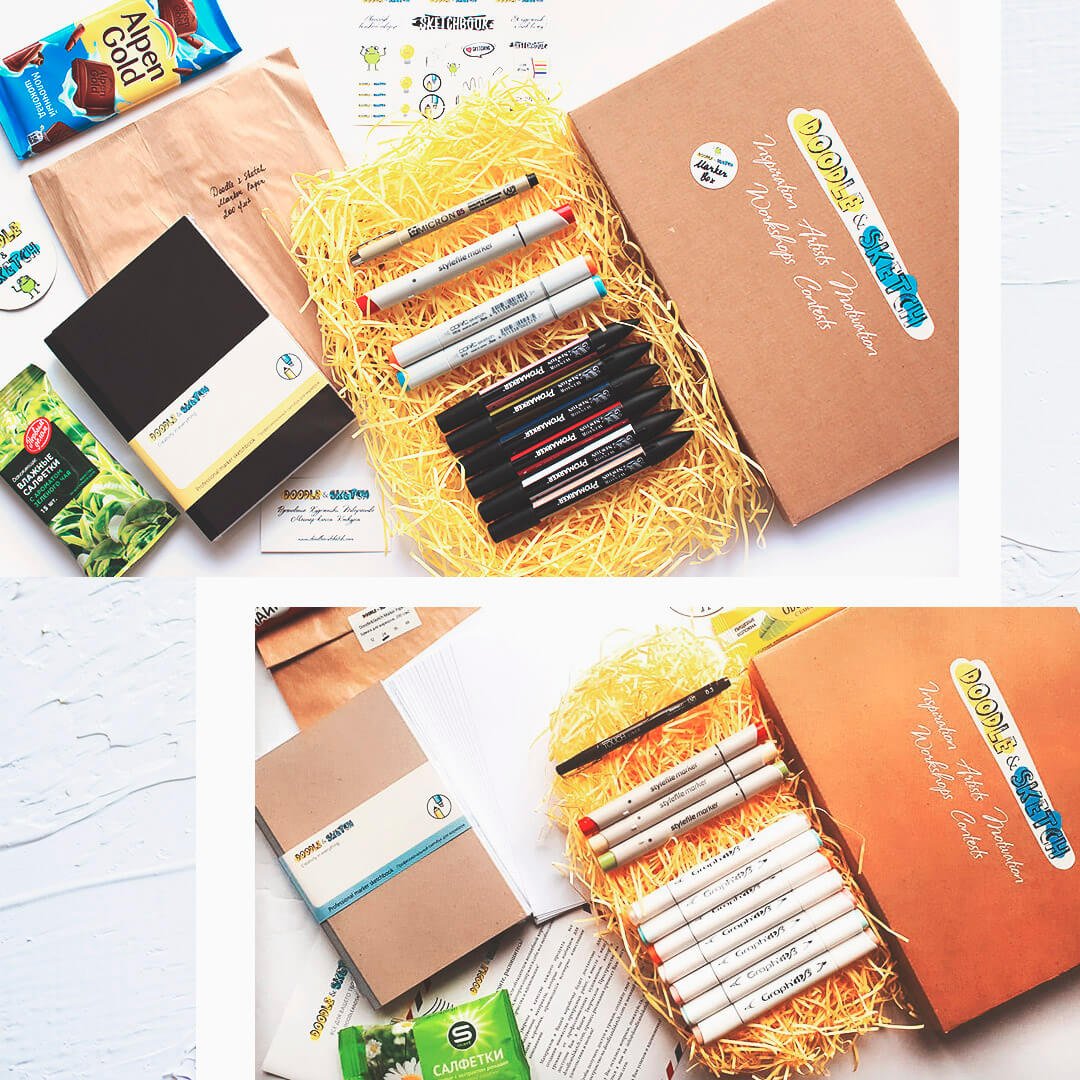 Набор Doodle&Sketch MarkerBox есть в разных вариациях. Расскажем кратко о том, что может входить в такой бокс.