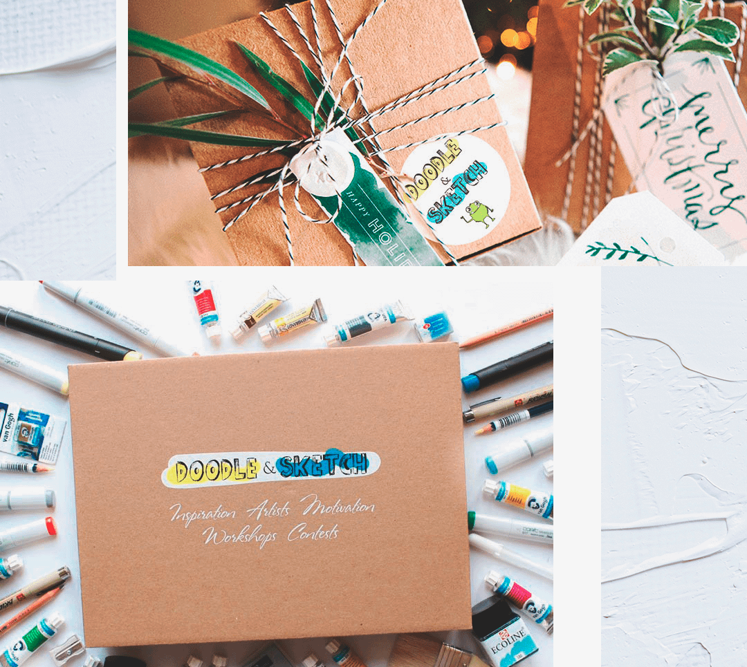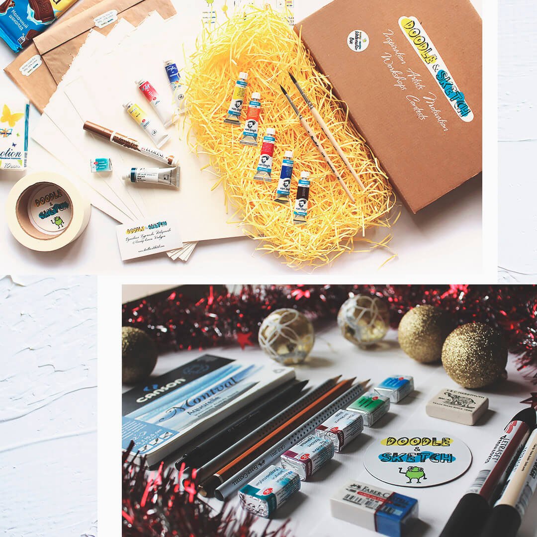Специально к Новому году Doodle&Sketch подготовили вдохновляющую коробочку с набором художественных материалов.