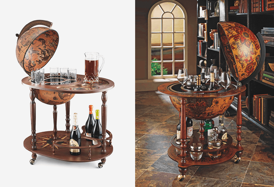 Неважно, любишь ты шумные вечеринки или скромные посиделки с подругами, в обоих случаях домашний мини-бар не будет лишним. Конкретно этот мы выбрали за интересный дизайн и функциональность: в нем можно спрятать любимую бутылочку бренди или ликера со стаканами, а при желании использовать как обычный журнальный столик. Если станет совсем скучно, можно заняться изучением карты.