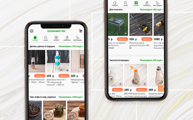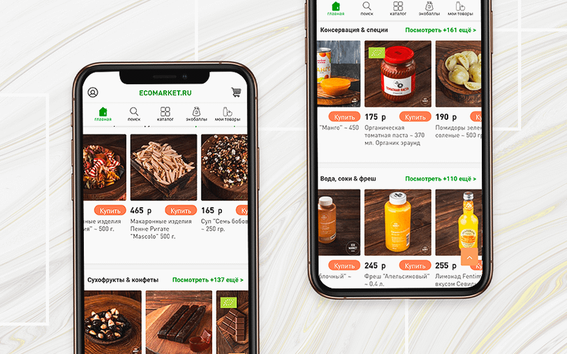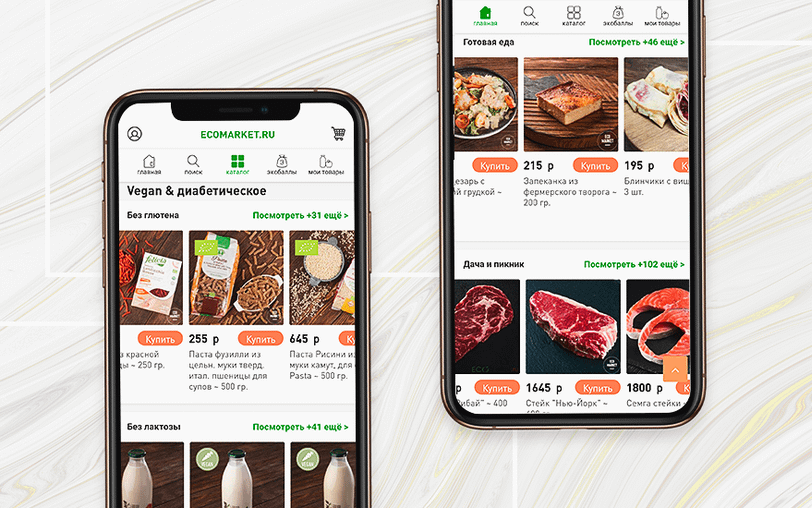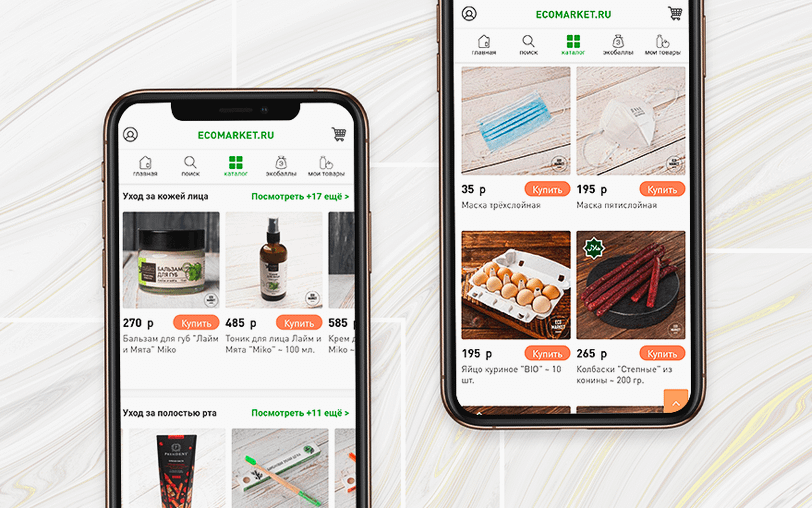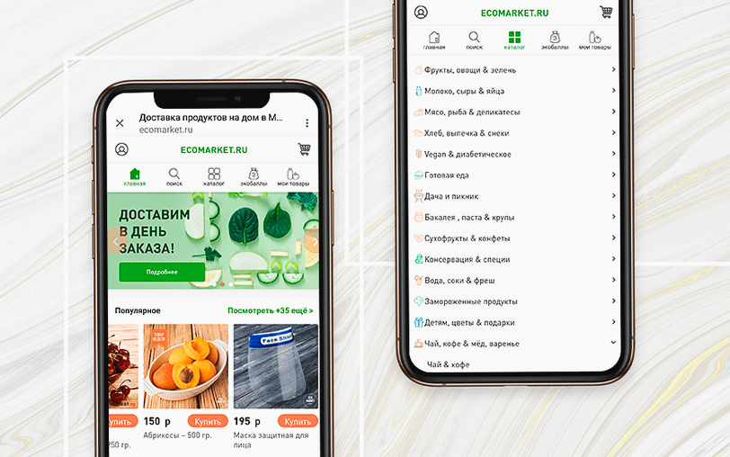 У Экомаркет.ру есть бонусная система: после каждого заказа тебе начислят бонусы в соотношении 1 рубль — 1 бонус. Чтобы оформить доставку, нужно зарегистрироваться на сайте, добавить в корзину необходимые товары, указать адрес и желаемое время.