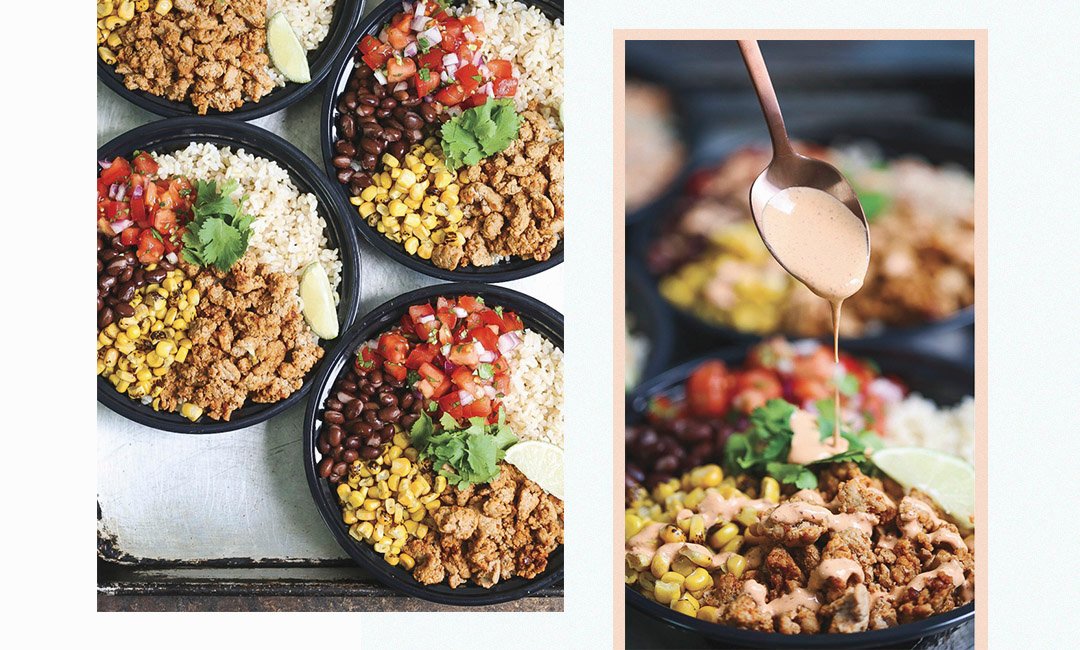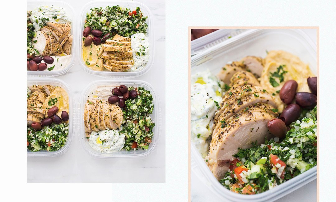 Замороженную цветную капусту обжаривай в течение 5-7 минут вместе с приправами и чесноком. Смешай ее с курицей, разложив на разные контейнеры, добавь в каждую чашку немного хумуса, оливок или сыра фета, а затем залей соусом дзадзики.
