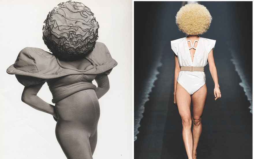 К этому же приему прибегал и Марджела, создавая весенне-летнюю коллекцию 2009 года. Он миксовал массивные, но воздушные шлемы с летящими платьями. Тем самым Мартин получил знаковые, знакомые, но до боли тревожные образы.
