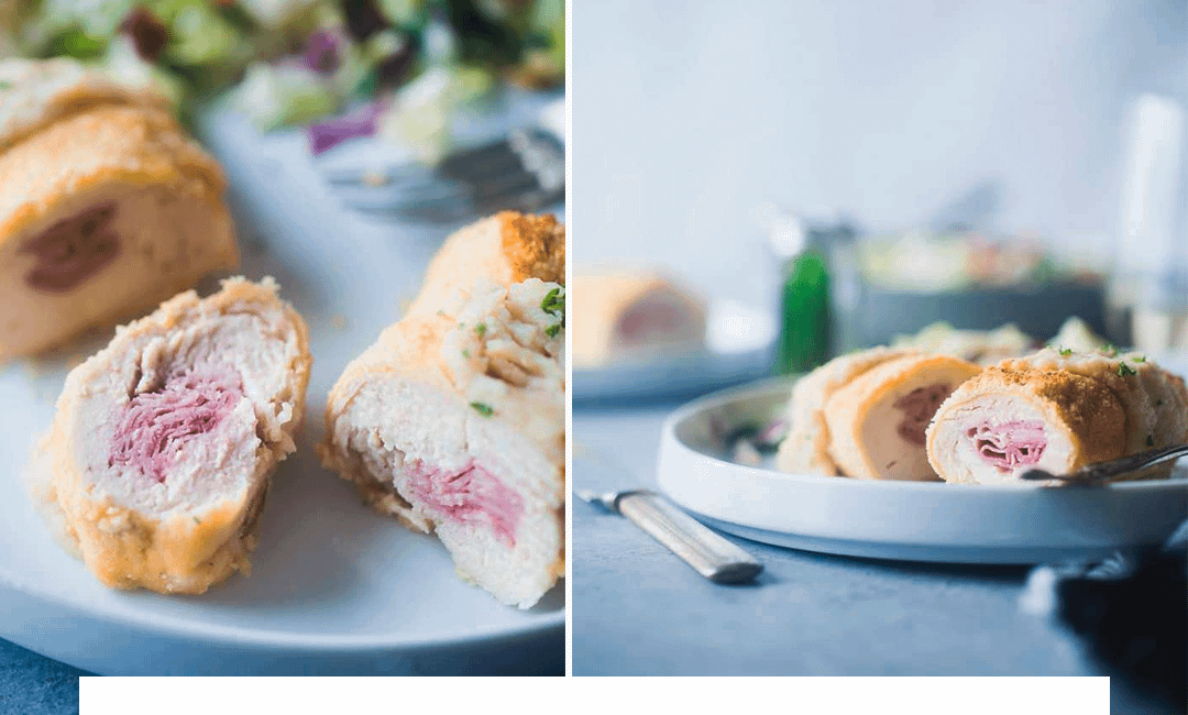 2. Кордон блю из курицы с ветчиной и соусом из цветной капусты