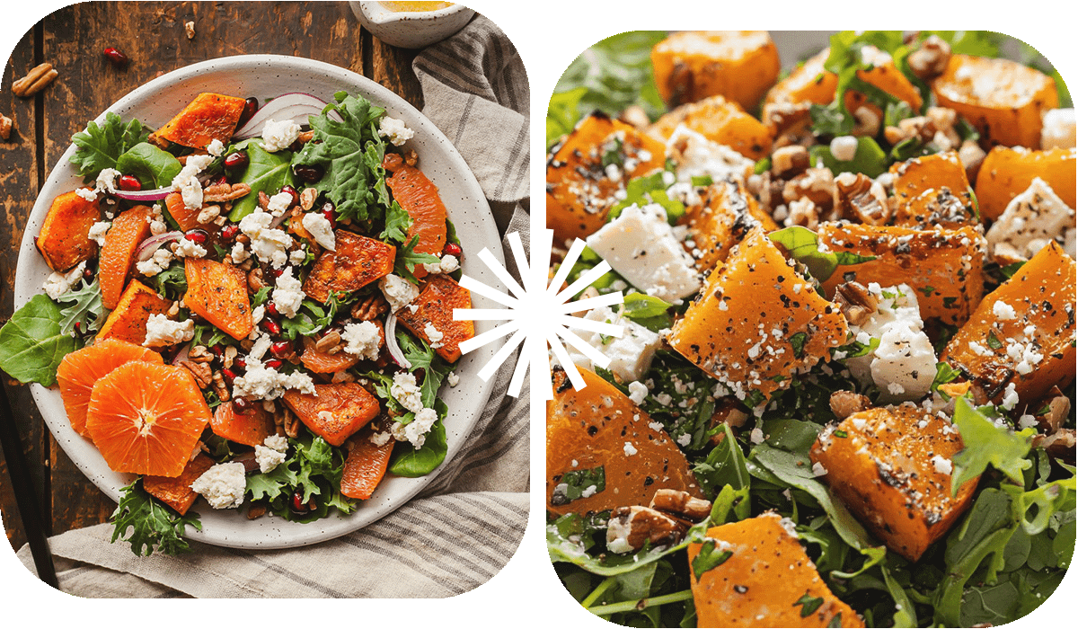 Сладкая и ароматная мускатная тыква, подрумяненная на гриле, в сочетании с пряной руколой создает идеальный баланс вкуса и текстур.