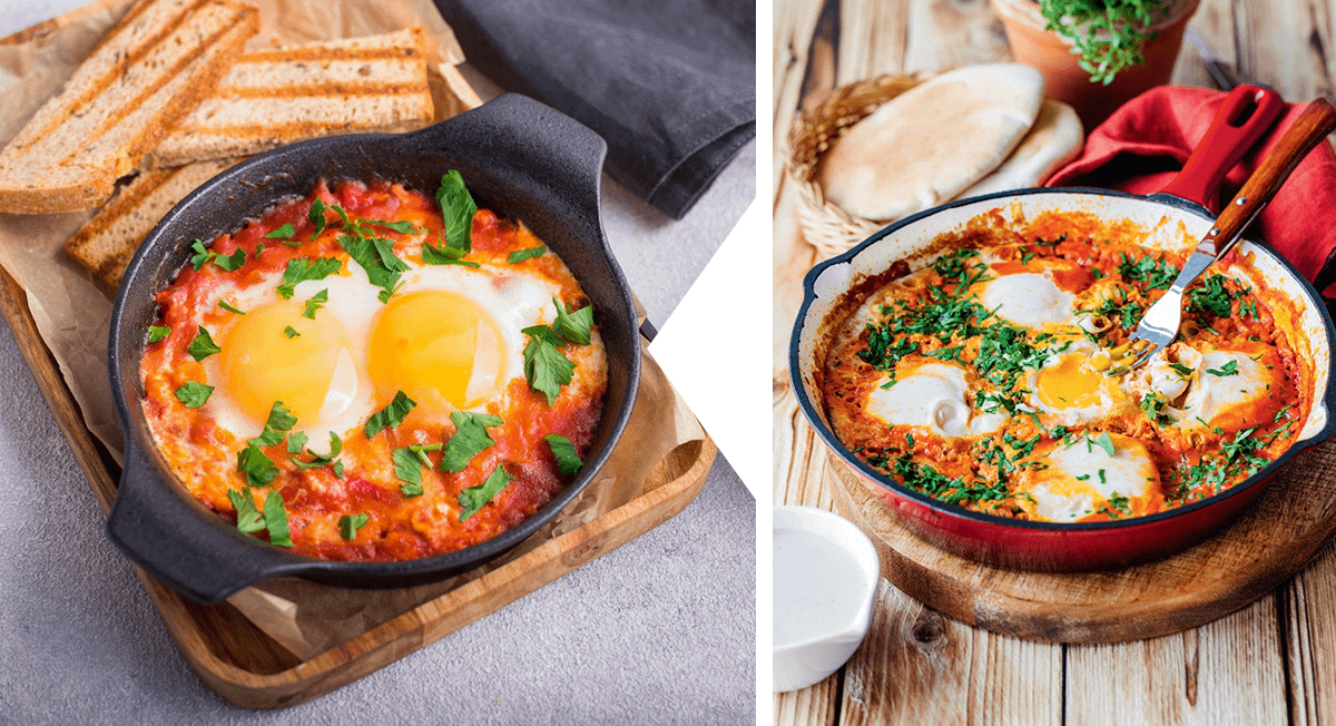 Сытный и вкусный завтрак на сковороде готовится за 15 минут. При желании шакшуку можно дополнить сосисками, но и без этого блюдо получится вкусным и сытным.