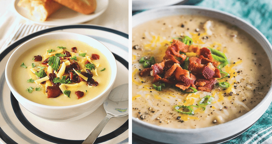 Поджарь бекон, затем раздели его на две части. Одну смешай с луком, измельченным чесноком, картофелем, бульоном и вари на среднем огне, пока овощи не станут мягкими. Как только суп приготовится, растопи на сковороде масло и вмешай в него муку либо крахмал, затем обжарь смесь до золотистого цвета. Добавляй в нее маленькими порциями горячие сливки или молоко — можешь нагреть их в микроволновке — и перемешивай получающийся соус, чтобы в нем не появлялись комочки.
