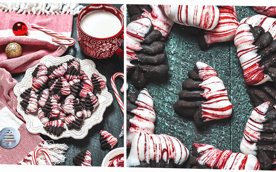 2. Разогрей духовку до 180 градусов. Охлажденное тесто раздели пополам. Раскатай одну половину на листе бумаги для выпечки, посыпь мукой с двух сторон, чтобы тесто не липло. Вырежи из теста фигуры с помощью формы для печенья. Положи их на противень с пергаментной бумагой и отправь в духовку примерно на 8 минут.