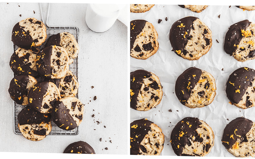 4. Растопи оставшийся шоколад в микроволновке или на плите. Макай в него половину каждого печенья. Поставь в холодильник на 30 минут.