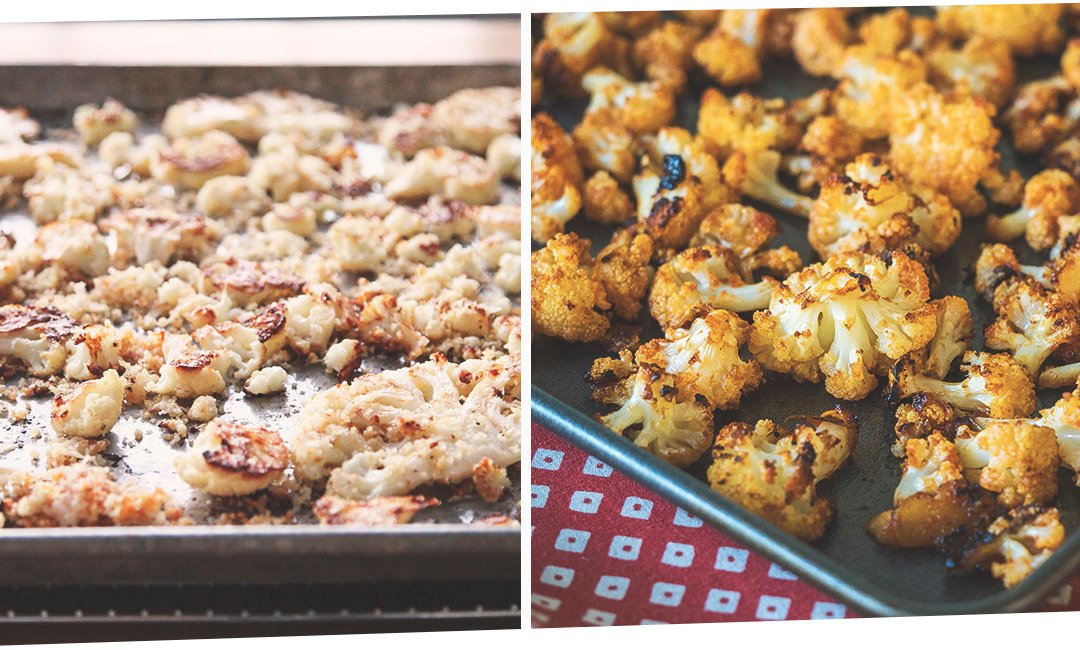 Приготовление: Разогрей духовку до 180 градусов. Удали листья и стебли у цветной капусты и нарежь ее крупными плоскими ломтиками. Не расстраивайся, если они будут разваливаться и крошиться.