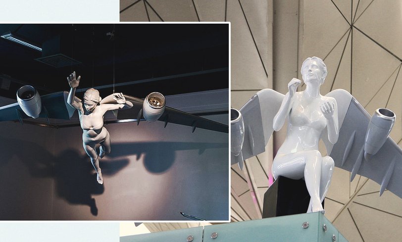 Кроме того, Дмитрий не раз выступал в качестве скульптора: его самая яркая выставка, показанная в новых залах аэровокзала Пулково, представляла собой серию драматических скульптур в виде женщин с крыльями самолетов — вместо ожидаемых ангельских крыльев. Таким образом, художник показывает, как расширяются пределы человеческого тела в цифровом веке.