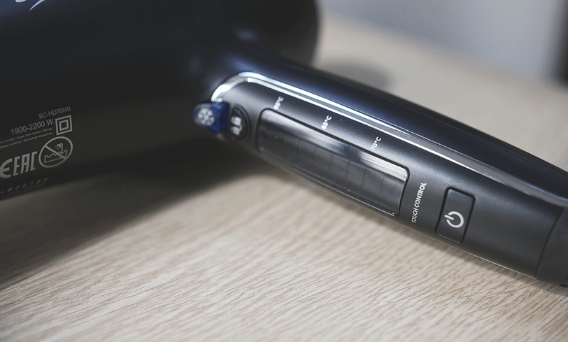 С помощью сенсорного управления ты сможешь быстро переключаться между режимами и сэкономишь время на укладку. Функция блокировки сенсорной панели сохраняет выбранный режим во время сушки и до последующего включения. Переключаясь между 8 температурными режимами, быстро подберешь ту температуру, которая подойдет под особенности твоих волос. Если для прически необходима высокая температура, смело используй ее — функция ионизации защитит волосы от повреждения. Чтобы зафиксировать прическу, используй кнопку подачи холодного воздуха.
