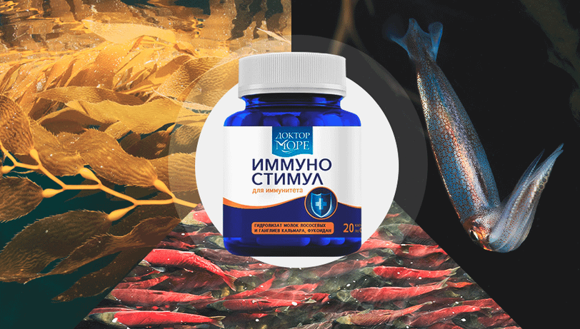 «ИммуноСтимул» — содержит пептиды из нервной ткани дальневосточных кальмаров, нуклеотиды молок лососевых рыб и полисахарид фукоидан, входящий в состав бурых водорослей. Вместе эти вещества не только помогают бороться с вирусными инфекциями и укрепляют иммунитет, но и позволяют чувствовать себя бодрее;