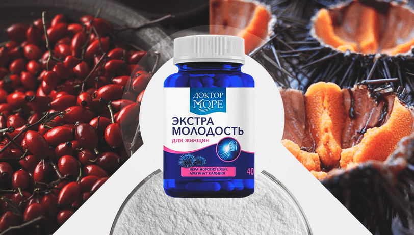 «Экстра Молодость» — сделан на основе икры морских ежей, альгината кальция и плодов шиповника. Эти вещества богаты микроэлементами, аминокислотами, витаминами и флавоноидами, которые способны нормализовать гормональный баланс, восстановить кальциевый обмен, повысить сопротивляемость к инфекциям и омолодить организм в целом;
