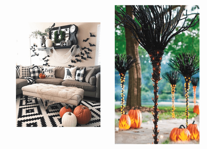 Творческий процесс при изготовлении декораций не менее захватывающий, чем при создании костюма. Ты можешь использовать перерабатываемые материалы: картон, цветную бумагу, стекло. Один из вариантов декора — инсталляция с летучими мышами, для нее потребуется только черный картон, нитки и клей. А для декорации с приведениями понадобится обычная гирлянда, марля и нитки. Отдай свое предпочтение натуральным материалам, которые не принесут вреда природе.